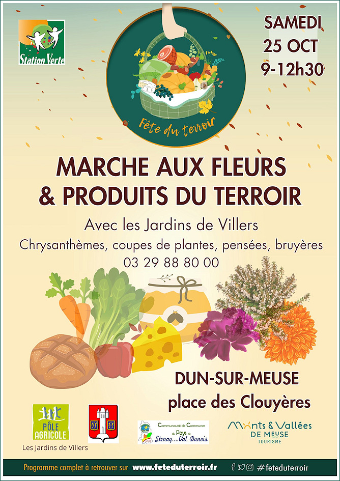 Marché aux fleurs et produits du terroirs le 25 oct. à Dun-sur-Meuse.
