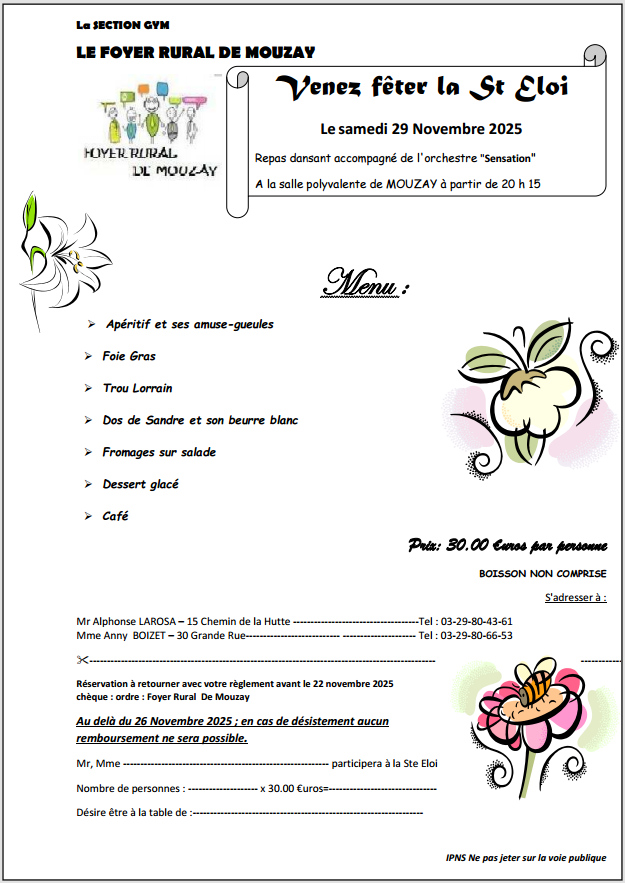 St- ÉLOI à Mouzay le samedi 29 novembre.