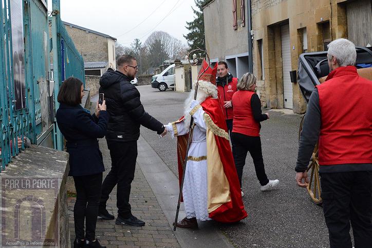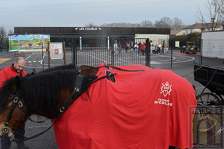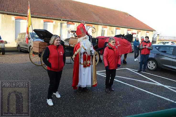 C'est dans un magnifique chariot tiré par deux chevaux que Saint-Nicolas a entamé sa tournée matinale. Son périple a débuté à l'IME (Institut Médico-Éducatif), où il a réservé ses premières salutations et distributions.