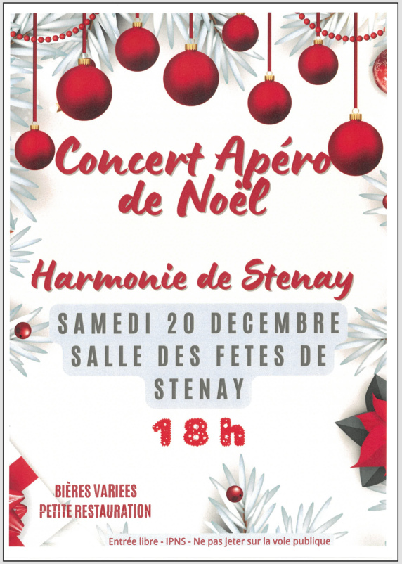Concert Apéro de Noël le 20 décembre à la salle des fêtes de Stenay.