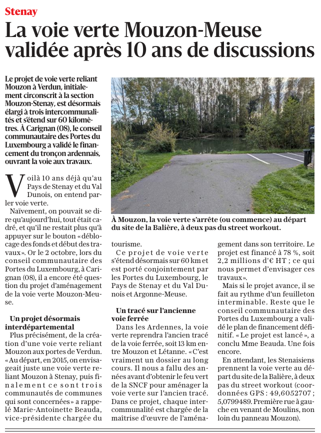La voie verte Mouzon-Meuse validée.