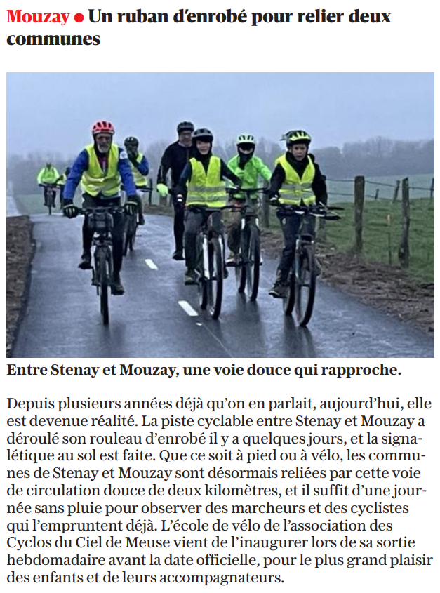 Ouverture de la piste cyclable reliant Mouzay à Stenay.