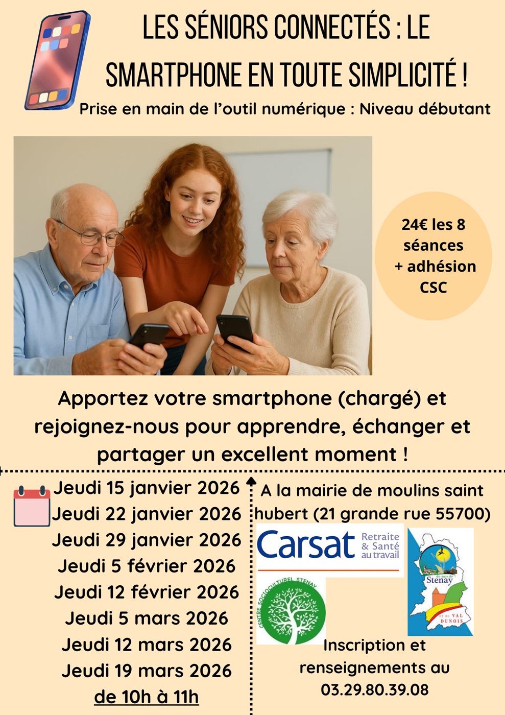 Cours d'utilisation du Smartphone pour les séniors à Moulins-St-Hubert.