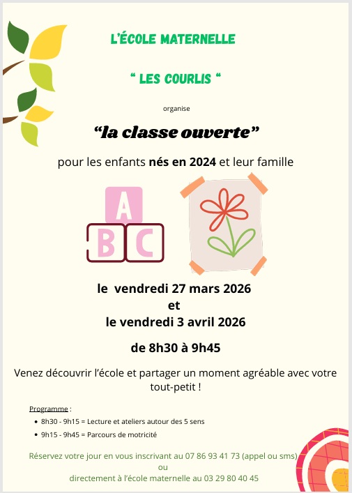 Classes ouvertes au Courlis, le 27 mars et le 3 avril