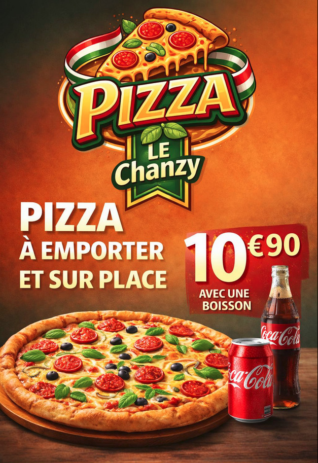 À emporter : Une pizza + 1 boisson 33cl : 10€90