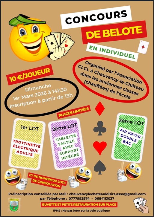 Concours de belote à Chauvency-le-Château le 1er Mars.