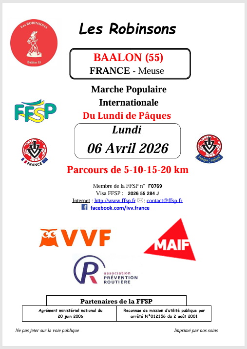 Marche de Pâques avec les Robinsons le 6 avril.