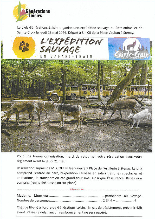 Voyage au Parc de Sainte-Croix avec le club Générations Loisirs le 28 mai.