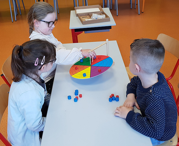 Le jeudi, l'accent a été mis sur la mixité et l'expérimentation. Les élèves de Grande Section (GS) et de Moyenne Section (MS) ont été répartis en six groupes multi-niveaux. Ils ont circulé sur six ateliers thématiques :