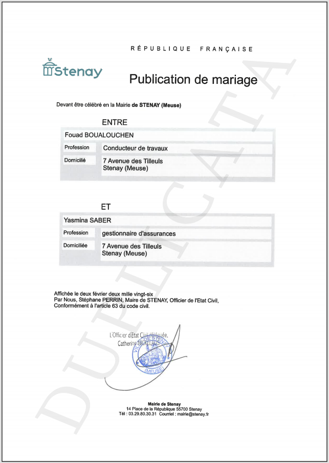 Prochain mariage entre M. BOUALOUCHEN Fouad et Mme SABER Yasmina