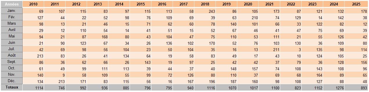 Pluviométrie 2025