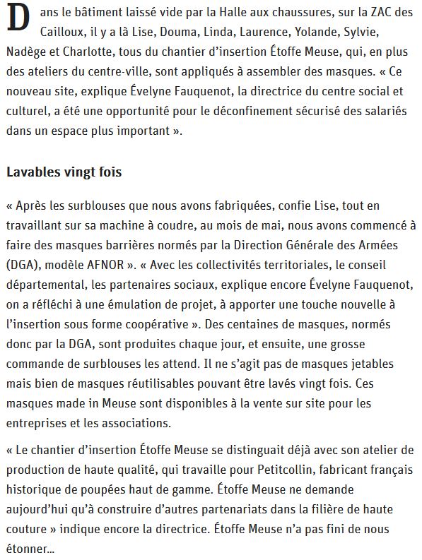 Étoffe Meuse fabrique des centaines de masques par jour.