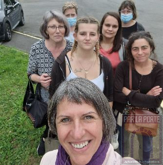 avec un groupe lors d'une visite.
