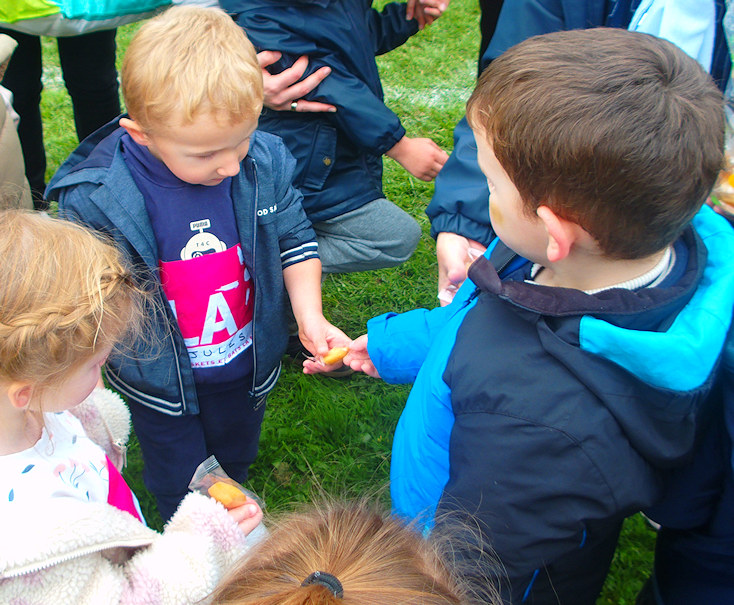 Après de nombreux efforts et un bel élan de générosité, les coureurs ont pu bénéficier d'un réconfort bien mérité. C'est le jeune Thiméo qui a eu la gentillesse d'offrir une petite madeleine à chacun.