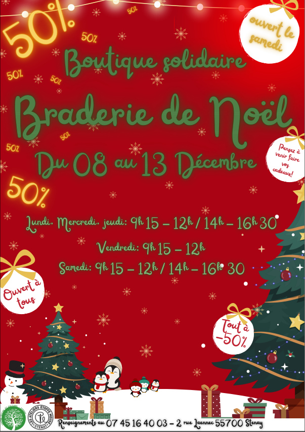 Braderie de Noël à la boutique solidaire du 8 au 13 décembre.