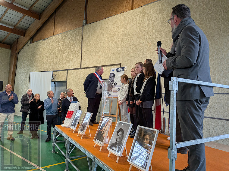 L’émotion n’était pas retombée quand Monsieur Xavier DELARUE, Préfet de la Meuse prit la parole. Il commença par souligner l’importance d’une telle cérémonie et sa satisfaction de voir dans la salle autant de jeunes. Il rendit hommage à Cédric SCHWINDT pour avoir porté ce projet et salua un homme d’une grande humanité. Après être revenu sur les actes héroïques de Louis PONSARD, Monsieur DELARUE rappela solennellement qu’il ne fallait jamais baisser la garde, que les révisionnistes et négationnistes étaient toujours à l’affût de la moindre occasion pour réécrire l’Histoire. La preuve en est la messe organisée dans une église de Verdun il y a quinze jours en l’honneur du Maréchal Pétain à la demande d’une association qui souhaite la réhabilitation du chef du gouvernement de Vichy, symbole de la collaboration avec le régime nazi pendant la 2ème Guerre Mondiale. Il souligna que Pétain avait été au-delà des demandes de l’occupant allemand et qu’en aucun cas il n’avait été le premier résistant de France.