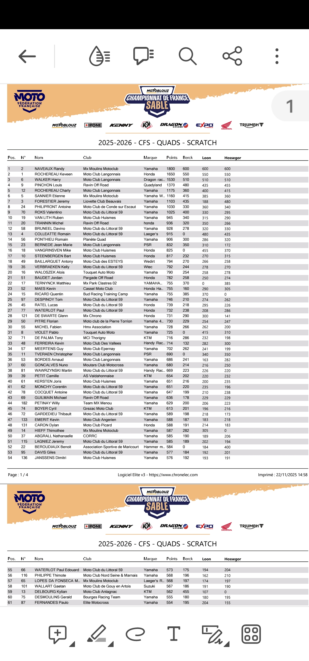 Et dès le départ, les pilotes du Mx Moulins Motoclub donnèrent le ton. Après un départ en fanfare de Randy, auteur une fois de plus du Hole-shot, il occupait la tête de la course, suivi d'Étienne Sannier ! Rapidement, la course prit son rythme et s'anima avec le retour du tenant du titre 2025, Keveen Rochereau !