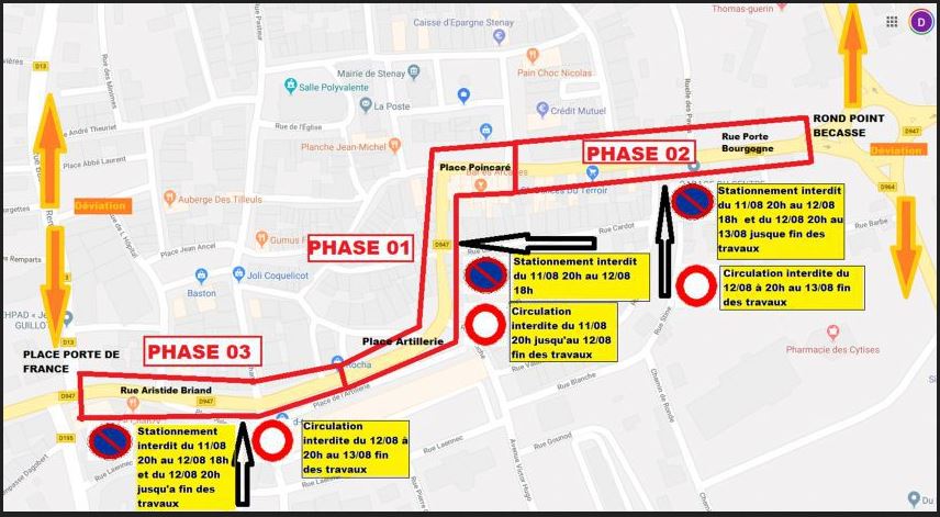 Communiqué de travaux au centre Ville, sur la RD 947.
